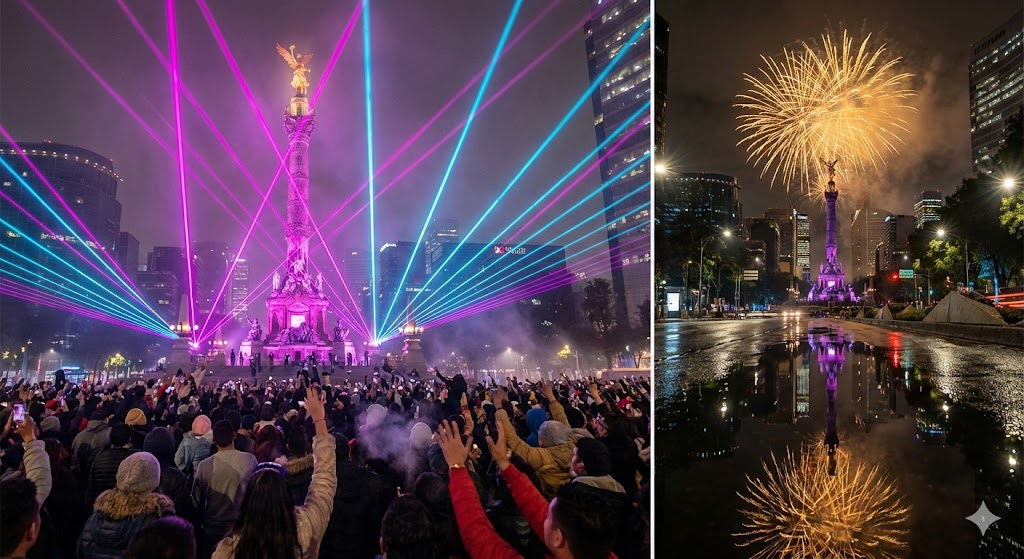 La capital se transforma en pista de baile masiva; miles abarrotan el Ángel para recibir el 2026 entre beats, luces y un operativo de seguridad inédito.