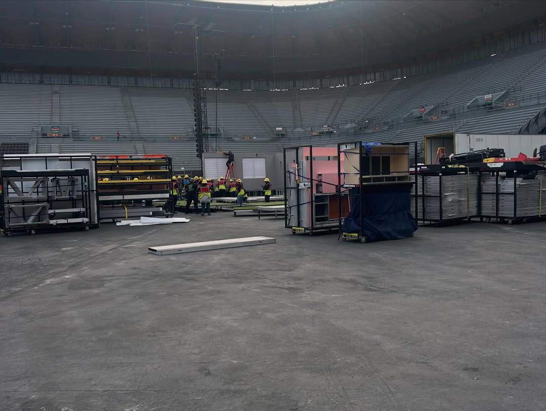 Las imágenes filtradas desde el interior del estadio muestran la misma producción que Bad Bunny ha llevado por Estados Unidos, Europa y Sudamérica, caracterizada por una pantalla frontal de gran formato que transmite visuales y tomas en tiempo real del show.